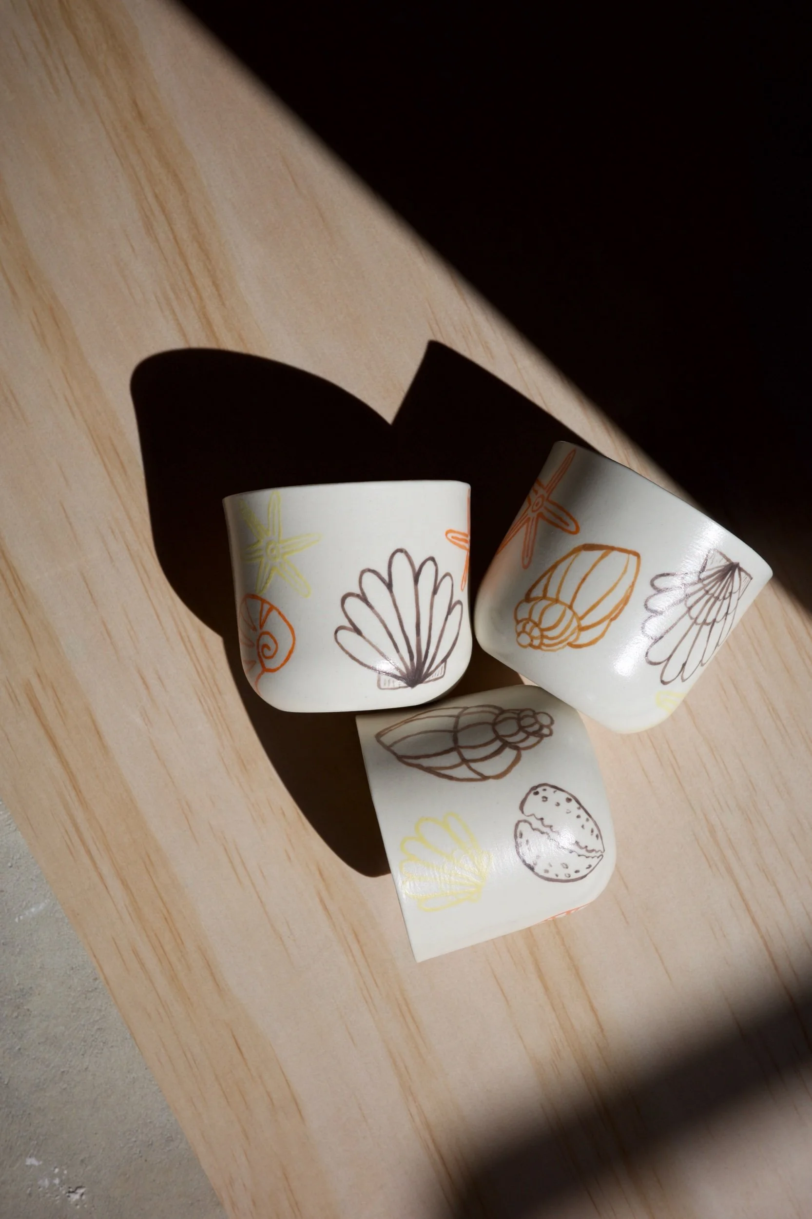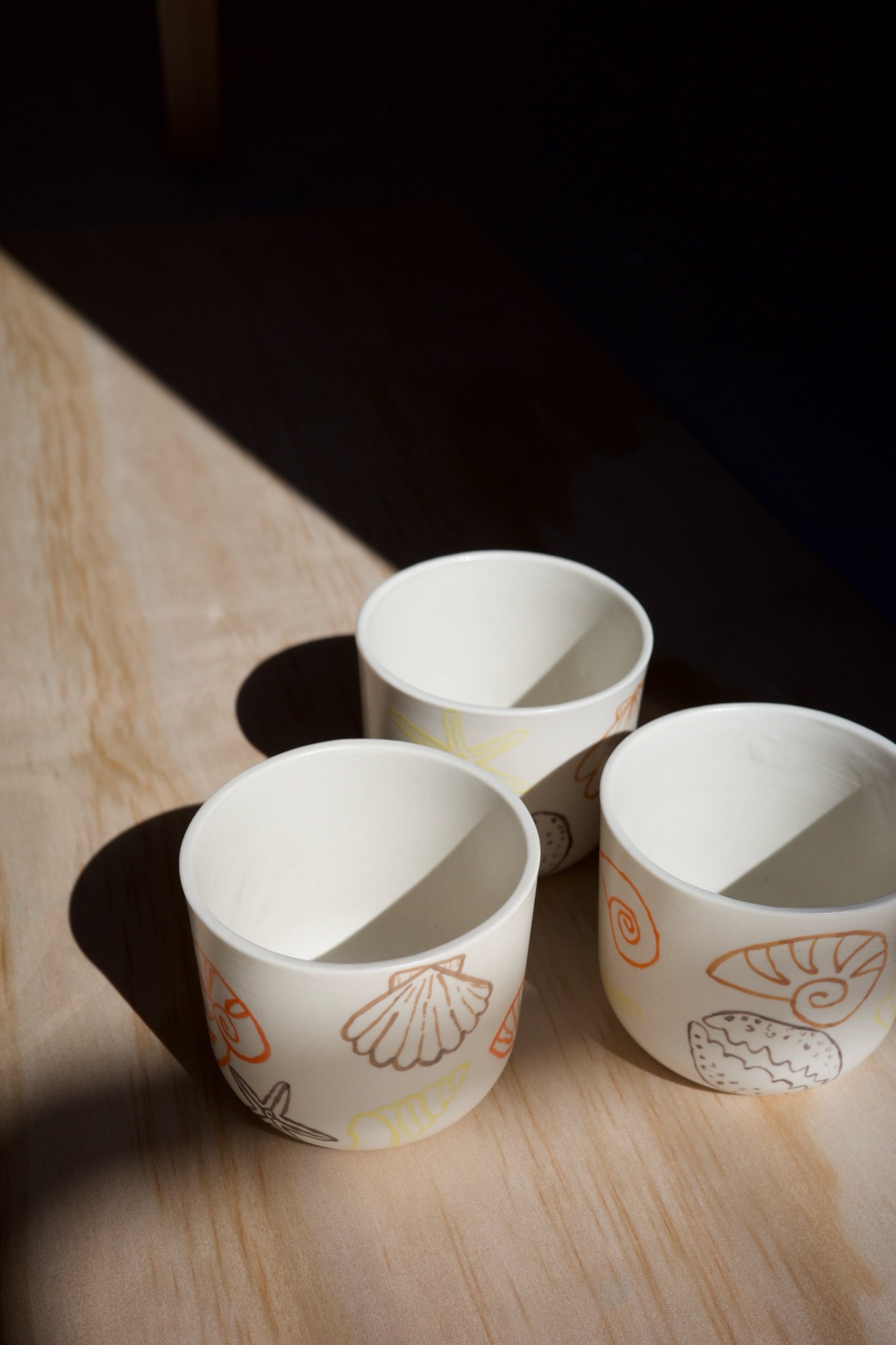 each cup is casted with a porcelain like slip, then hand painted & glazed.
