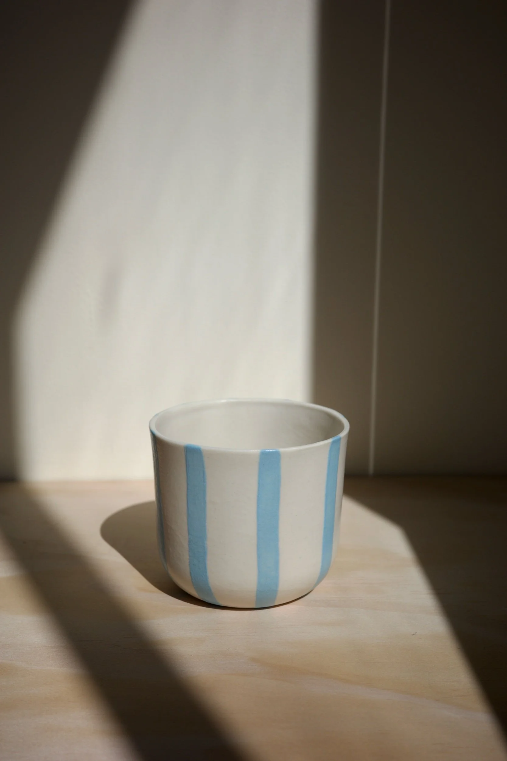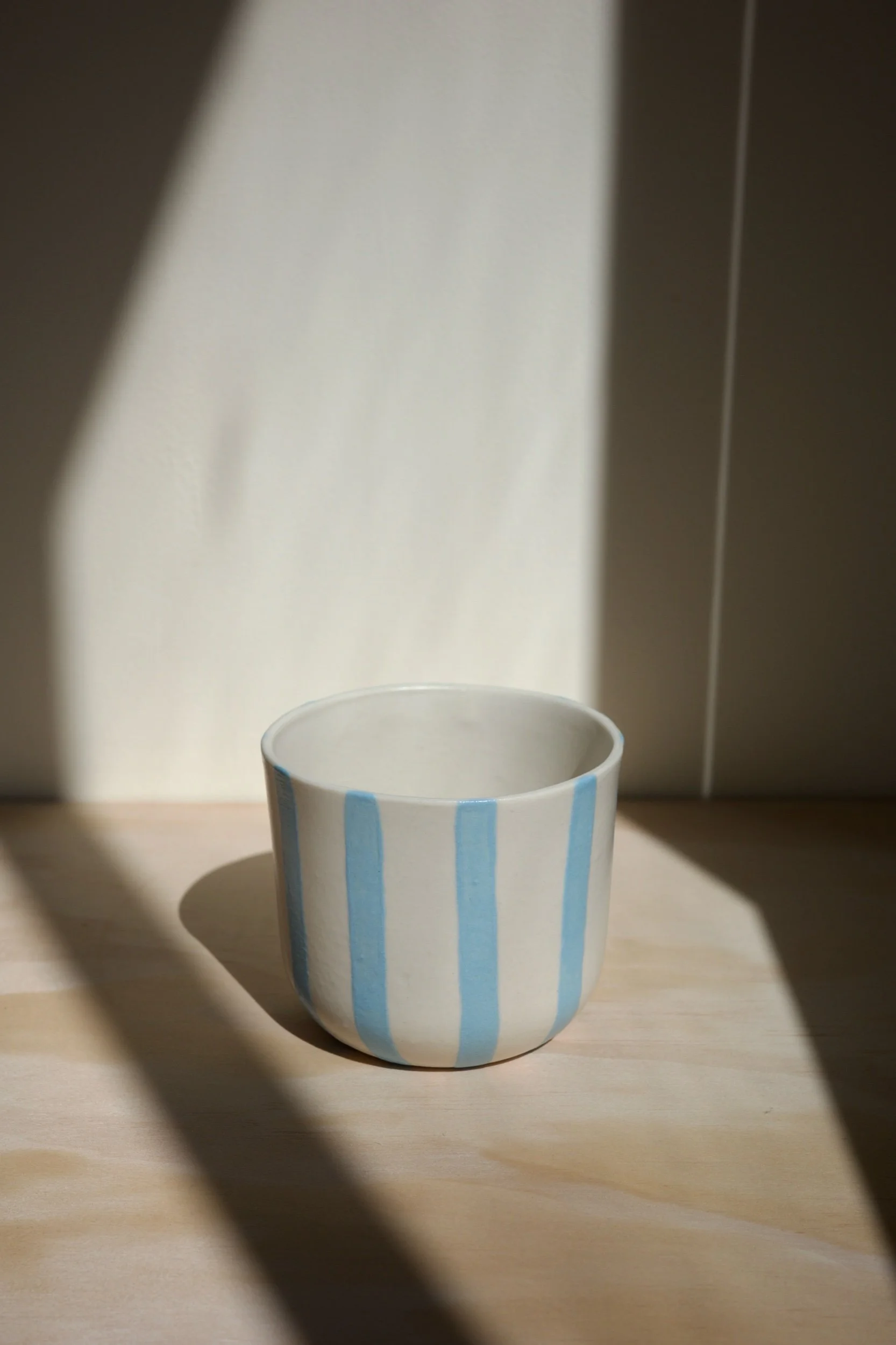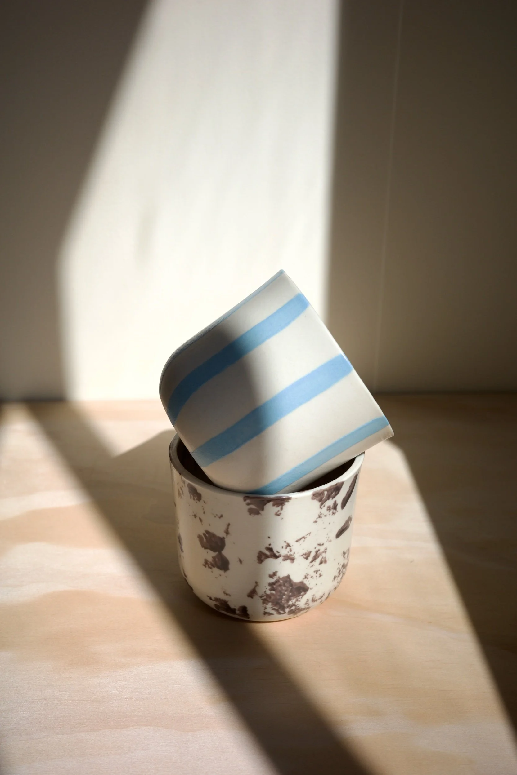 each cup is casted with a porcelain like slip, then hand painted & glazed.
